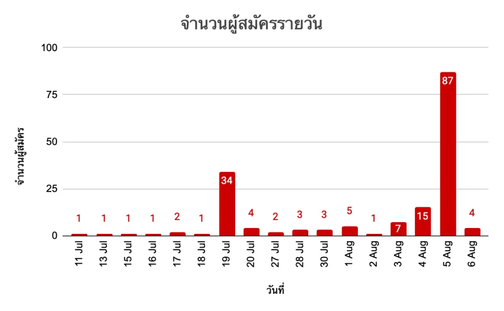 ชีวิตคนขับเคลื่อนด้วยเดดไลน์ โดยเฉพาะเด็กเกษตร! มาลองดูจำนวนคนสมัครต่อวันที่กราฟด้านล่าง