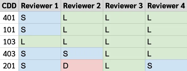 มีการกำหนดคะแนนดังนี้ D สีแดง = 0 คะแนน, L สีเขียว = 1 คะแนน, S สีฟ้า =3 คะแนน หลักการง่ายมาก คือลอกการนับคะแนนฟุตบอลใน League เขาใช้แบบนี้กันหมดมันต้องมีเหตุผล Support แหละ