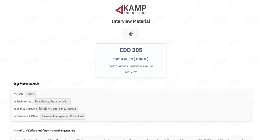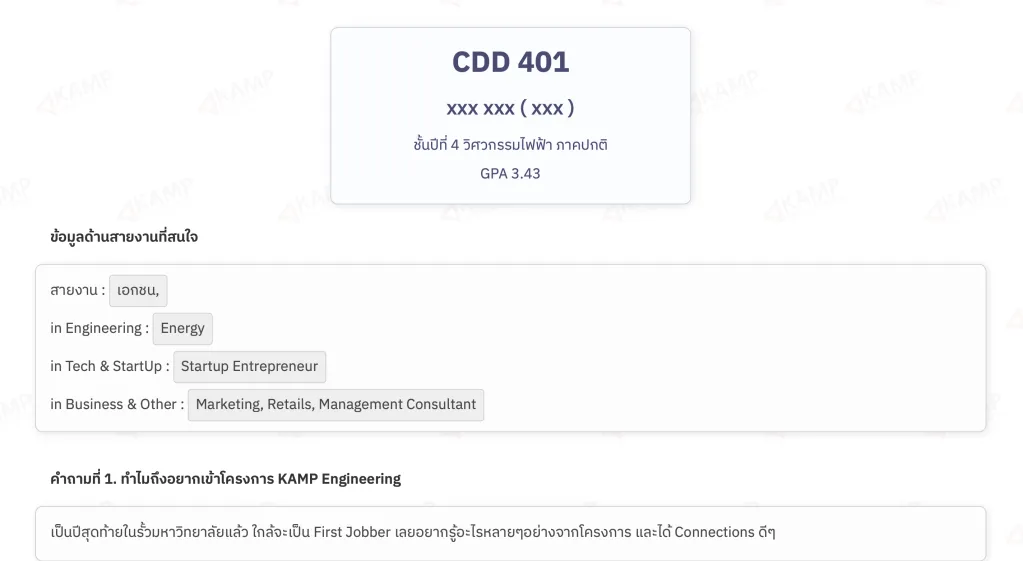 และให้ Mentor ได้เป็นคนเลือกผู้เข้าร่วมโครงการจากการสัมภาษณ์ จากนั้นก็ถือว่าเสร็จสิ้นกระบวนการรับสมัครของโครงการ KAMP Engineering