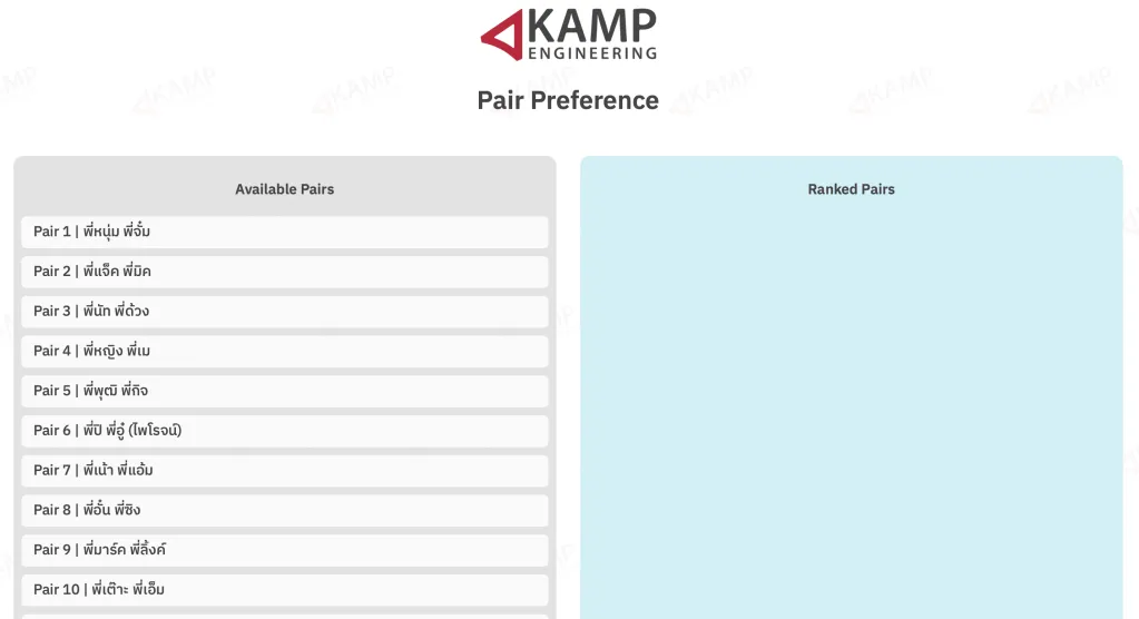 หลังจากสัมภาษณ์เสร็จเรียบร้อย ก็จะให้พี่ๆ Mentor เรียงลำดับน้องที่ต้องการให้เข้าร่วม Pair ของตัวเอง แล้วทีมงานก็เอาข้อมูลนี้มา Process