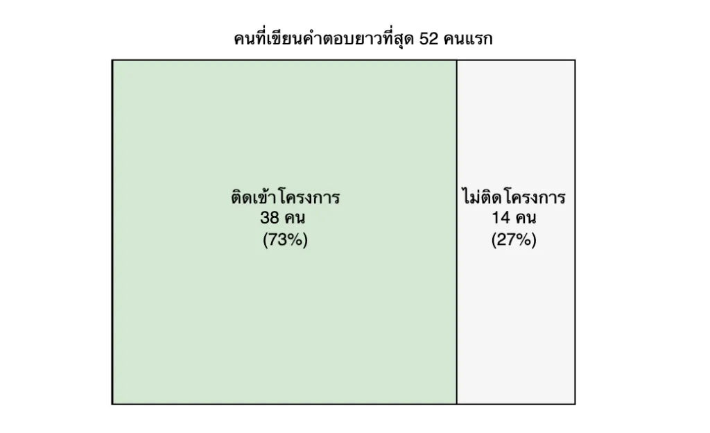 ผลลัพธ์ที่ได้ก็คือ มีคนที่อยู่ในกลุ่มเขียนยาวที่สุดและติดเข้าโครงการจริงๆ 38 คน