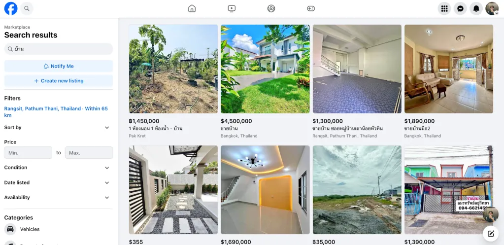 ซึ่งช่องทางที่ใช้เลือกซื้อสินค้ามือ 2 ก็คืออ Facebook Marketplace มีทุกอย่างตั้งแต่สายชาร์จไปจนถึงบ้าน (มันมีคนซื้อบ้านทางนี้จริงๆหรอ 5555)