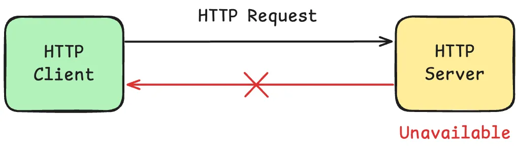 แต่สิ่งที่เราเจอคือความว่างเปล่า เนื่องจาก HTTP Client ได้ส่ง HTTP Request ออกไป แต่เรายังไม่มี HTTP Server เลยไม่มีอะไรตอบกลับมา