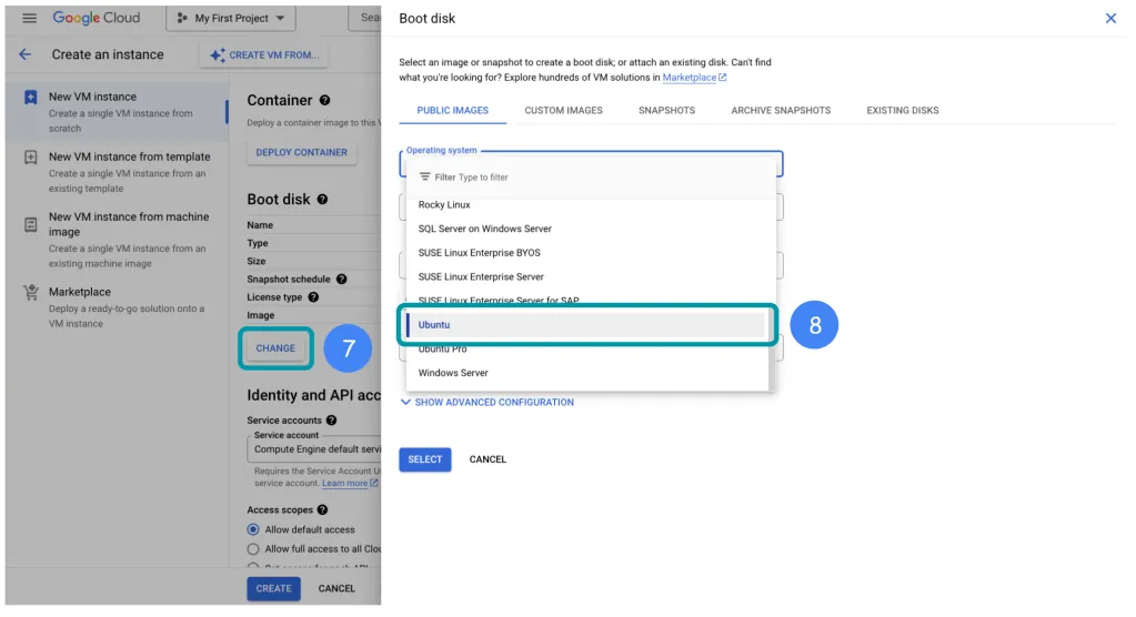 6. เลือก Boot Disk และเลือก Operating System ให้เป็น Ubuntu (Operating System แต่ละตัวมีคำสั่งไม่เหมือนกัน)