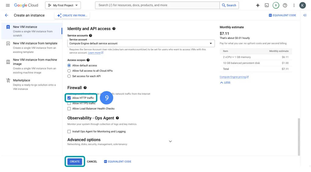 7. เลือก Allow HTTP traffic เนื่องจากเราจะส่ง Request เข้ามาด้วย HTTP