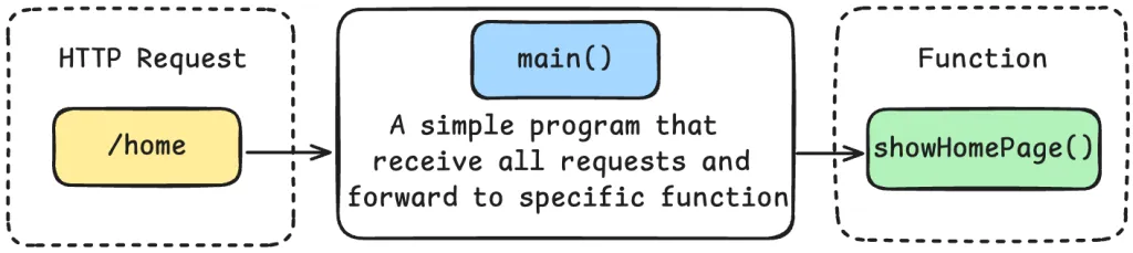 ถ้า Request มี Endpoint เป็น “/home” จะไปเรียกใช้ Function ชื่อ showHomePage()