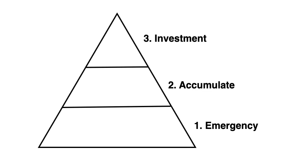 Emergency (เงินสำรองฉุกเฉิน) - เป็นเงินที่จะเก็บเอาไว้ใช้ยามฉุกเฉิน เช่น ตกงาน บ้านไฟไหม้ ป่วยหนัก เงินส่วนนี้จะมาช่วยเรา ซึ่งควรเก็บเอาไว้คิดเป็น 3 - 6 เท่าของรายจ่ายต่อเดือน